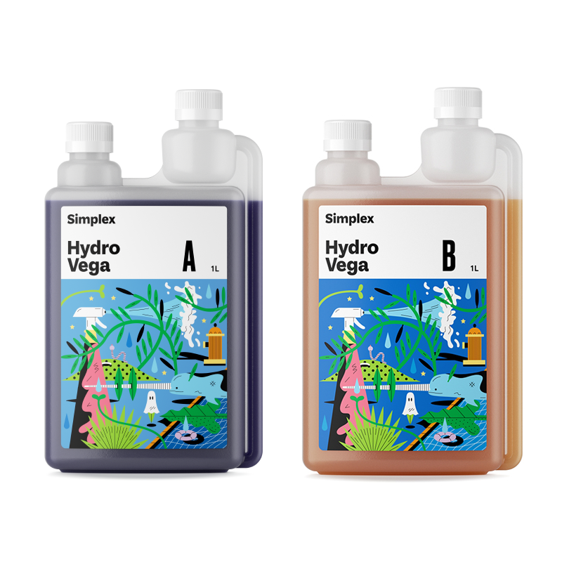 Simplex Hydro Vega (А & В) 1л - Комплексное удобрение для выращивания в гидропонных системах любого типа, разработано для питания растений в период вегетации и предцвета.
